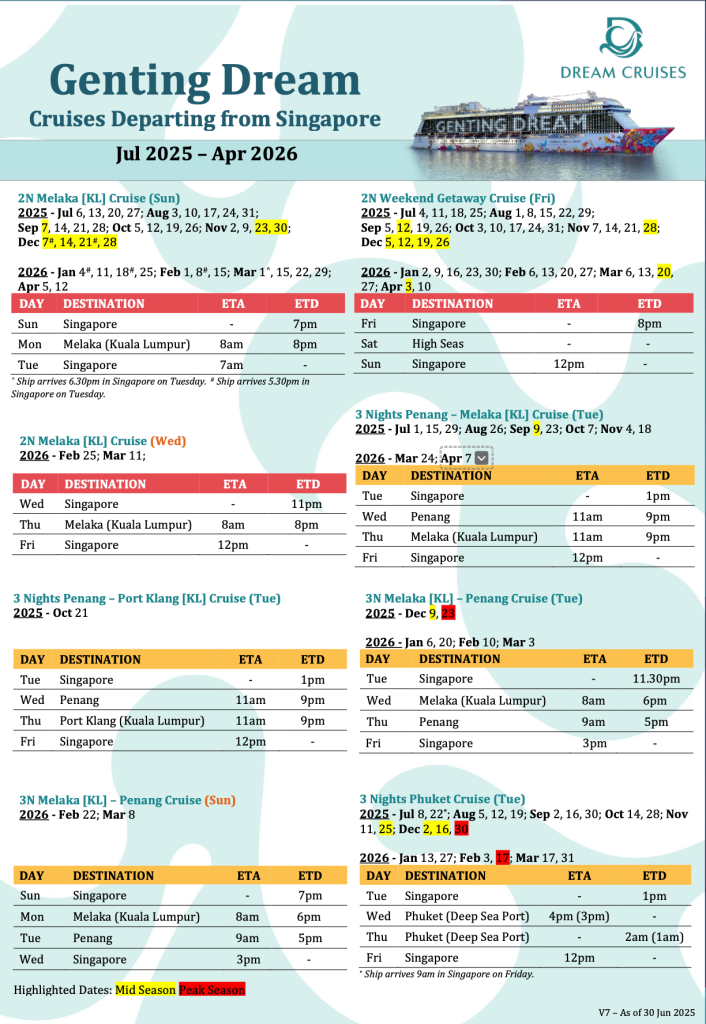 Embark on an unforgettable luxury cruise with Genting Dream by Resorts World Cruises, offering a perfect blend of relaxation, adventure, and cultural exploration. Departing from Singapore, this cruise is tailored for the Asian market, featuring world-class amenities, diverse dining, and exciting entertainment. Choose from a variety of itineraries ranging from 2 to 4 nights, visiting stunning destinations in Malaysia and Thailand.